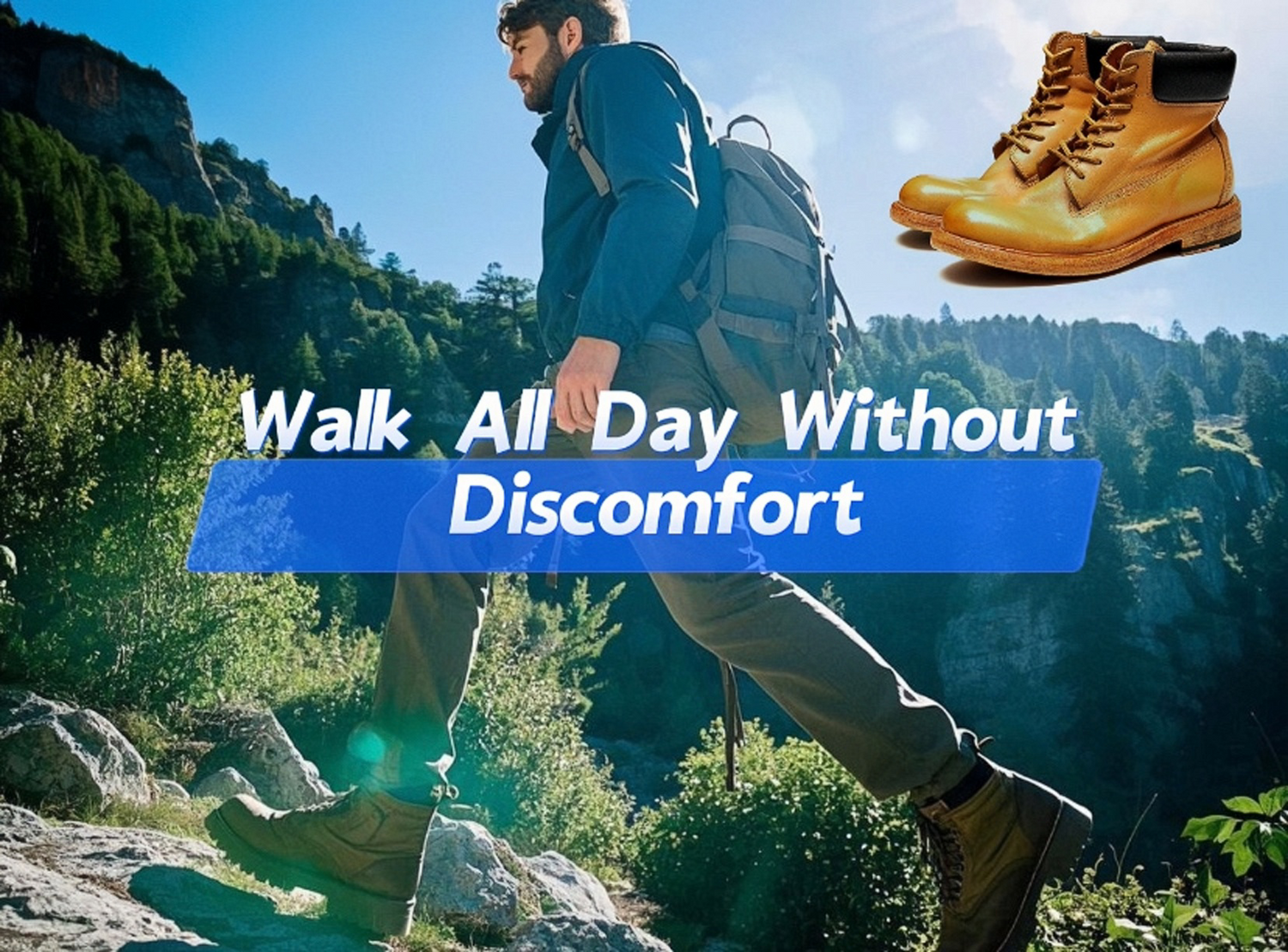 Men's Genuine Leather Lychee Grain Business Handmade European Style Cowhide Round Toe Workwear Goodyear Boots Handmade Leather Shoes Men 1570-02