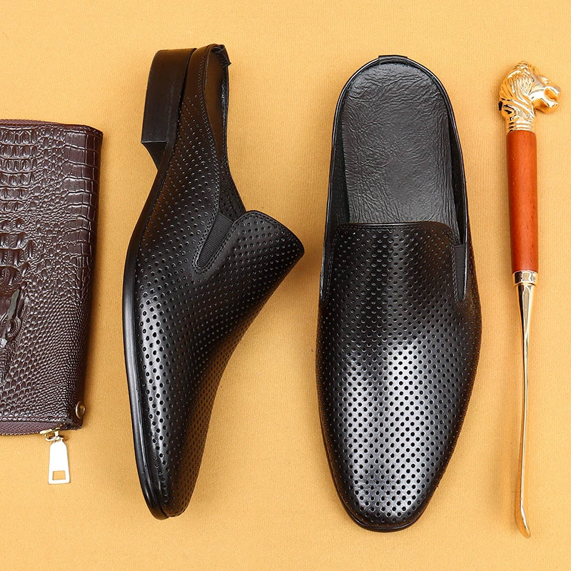 Men's Genuine Leather Perforated Mules 65166