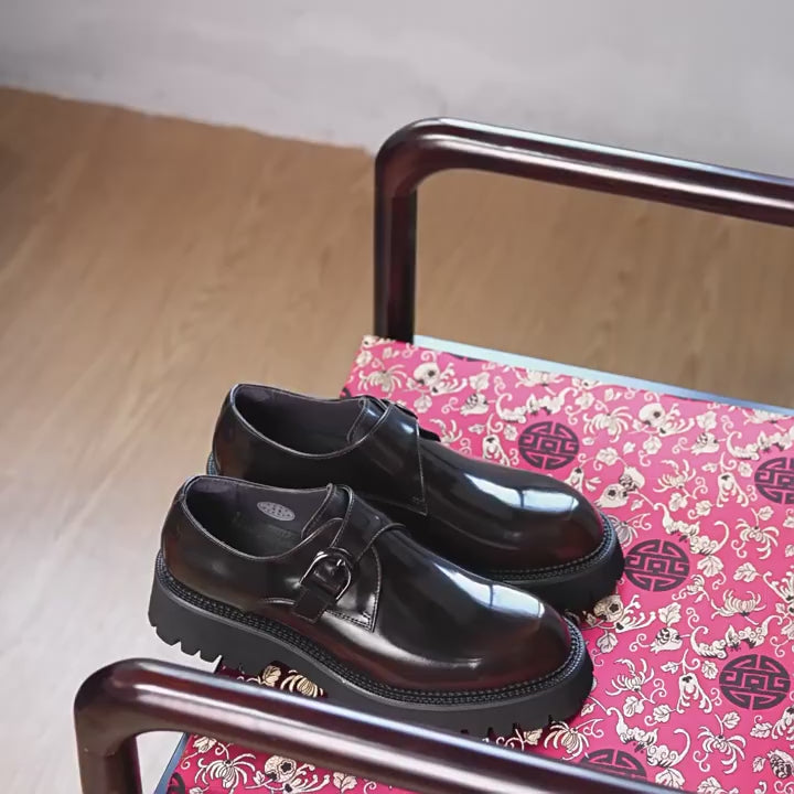 Herrenschuhe aus Leder mit dicker Sohle, britische Business-Casual-Schnalle, Monk-Schuhe aus Leder, britische spitze, glänzende Abendschuhe23681