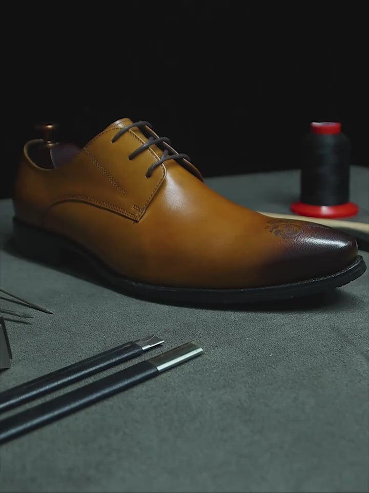 Erste Schicht Rindsleder Herren Lederschuhe Britische Business-Kleidung Lederschuhe Herren Atmungsaktive echte Rindslederoberfläche Spitz Geschnitzte Derby-Schuhe25829