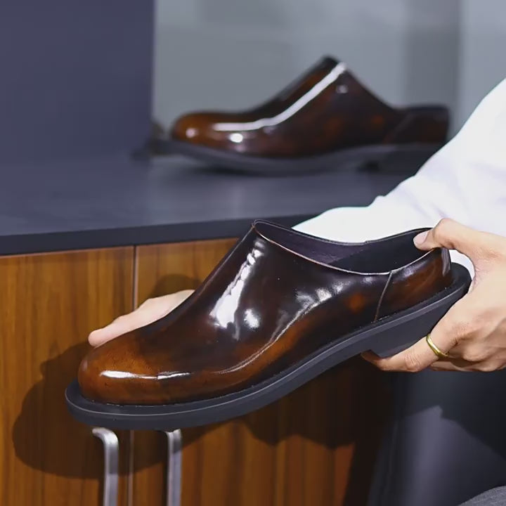 Erste Schicht Rindsleder Herren Lederschuhe Halbschuhe Herren Slip-on Plateau Lederschuhe Echtes Leder Glänzendes Lackleder Koreanische Mode Big Head Schuhe23670