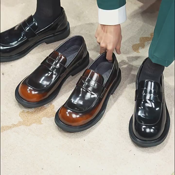 Erste Schicht Rindsleder Herren Lederschuhe Big Head Lederschuhe Herren Weites Bein Leder Hochwertiges Lackleder Glänzend Rundkopf Britische Loafer23691