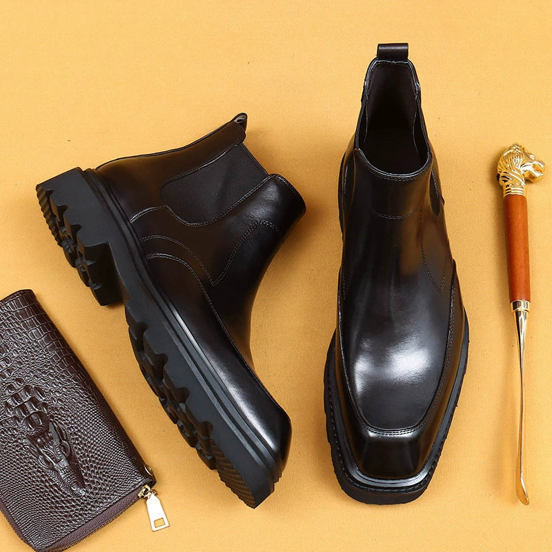 Tired of narrow, flimsy winter boots? These genuine leather Chelsea boots (square-toe + chunky sole) blend British polish with winter-ready comfort. Perfect for business-casual—hassle-free slip-on, warm, and sturdy for daily wear.