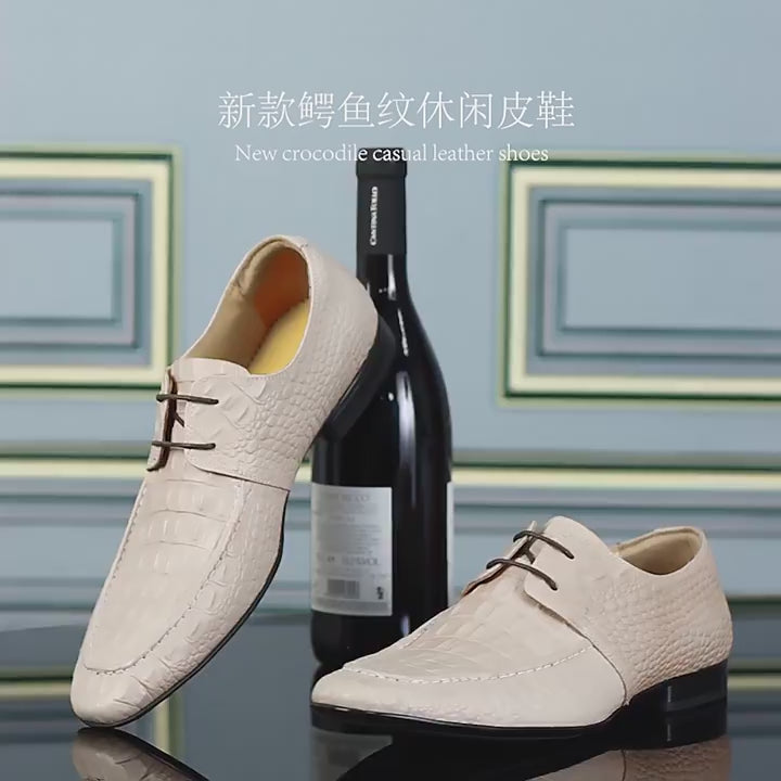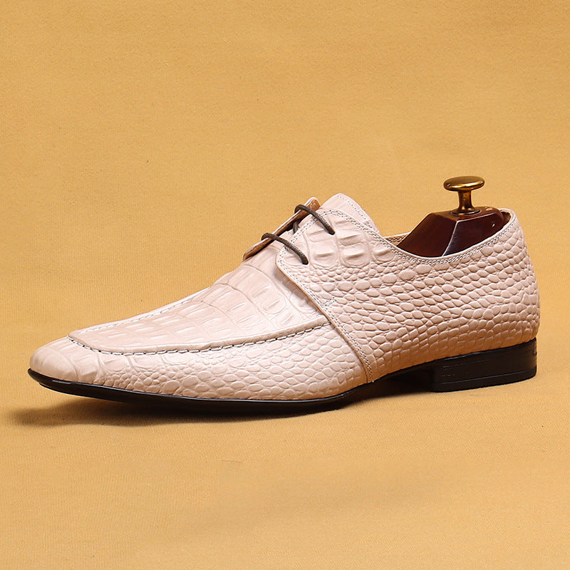 Chaussures en cuir à motif crocodile pour hommes Chaussures en cuir véritable à semelle souple et surface souple Chaussures Derby décontractées pour le travail Chaussures britanniques en relief pour hommes 65119