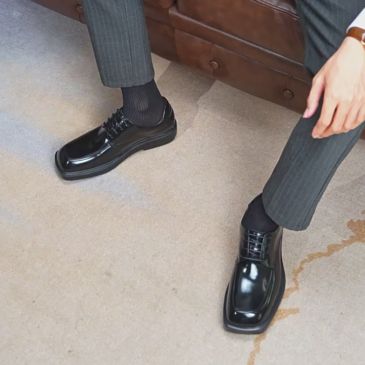 Chaussures en cuir de vachette de première couche pour hommes Chaussures en cuir brillant à gros orteil Chaussures à plateforme à bout carré pour hommes Chaussures brillantes en cuir verni britannique Chaussures Derby décontractées pour le travail23701