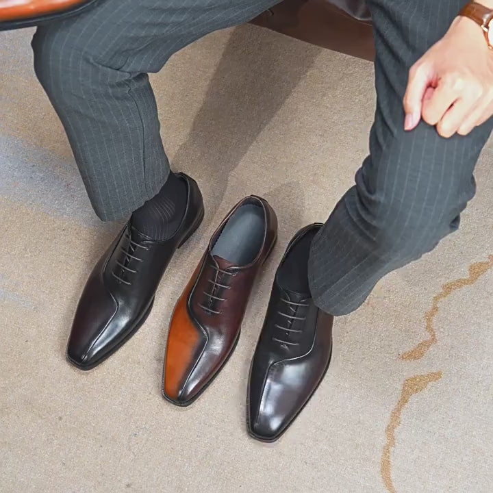Chaussures en cuir de vachette de première couche pour hommes Chaussures en cuir pour hommes Chaussures Oxford pointues faites à la main en cuir de vachette véritable de couleur assortie 65123