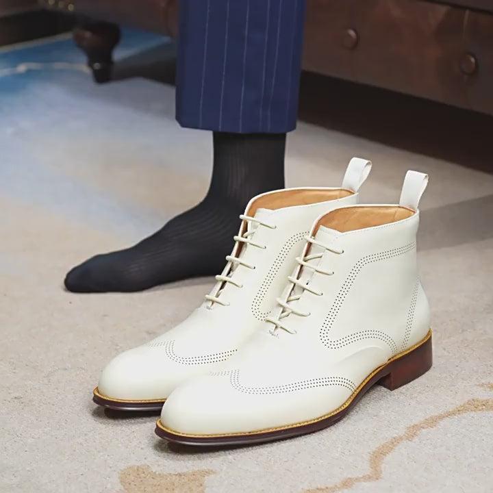 Chaussures en cuir de vachette de première couche pour hommes, bottes Martin d'automne et d'hiver, bottes montantes en cuir véritable sculpté de style britannique pour hommes, bottes blanches pour hommes96157