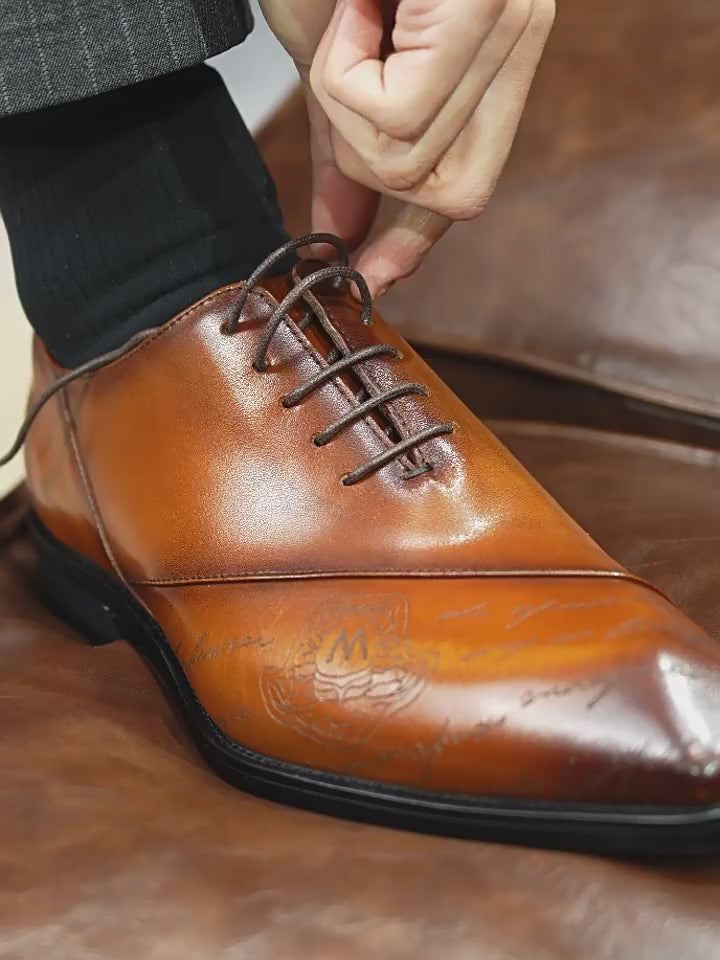 Chaussures en cuir de vachette de première couche pour hommes Chaussures Oxford pointues pour hommes en cuir de vachette sculpté de première couche pour hommes 96131
