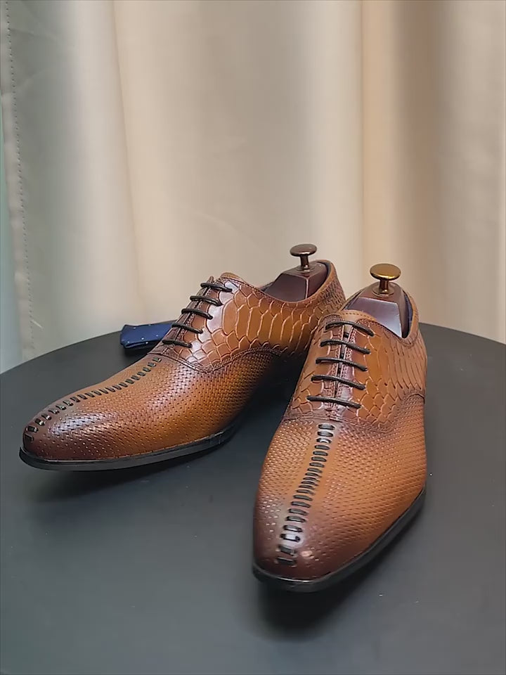 Chaussures en cuir de vachette de première couche pour hommes Chaussures en cuir véritable pour hommes Chaussures d'affaires formelles en cuir de vachette de première couche Chaussures Oxford pointues en relief de crocodile 68133