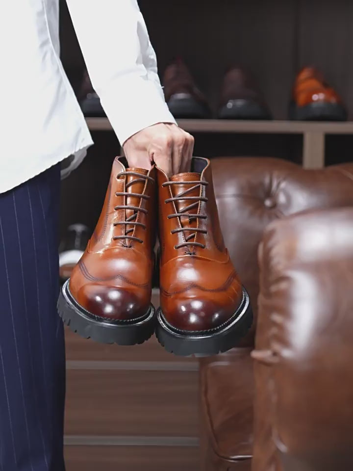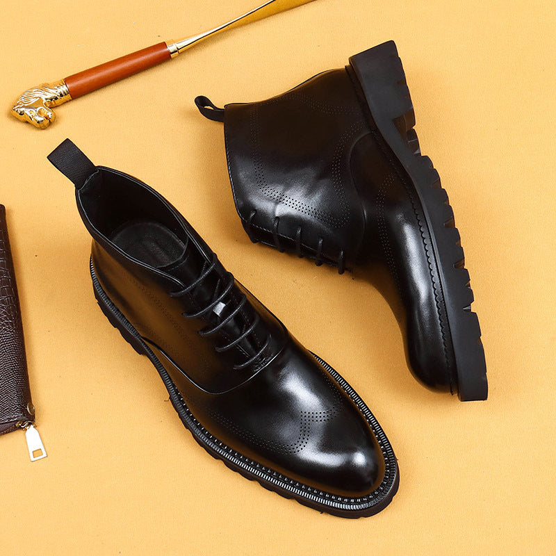 Chaussures en cuir de vachette de première couche pour hommes, bottes Martin d'hiver pour hommes, bottes brogue sculptées à semelle épaisse en cuir de vache véritable de style britannique96152
