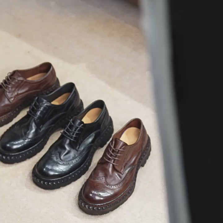 Brogue Leather Sole High-End Business Casual Leather Shoes Men Brogue Genuine Leather Retro British Style 82713