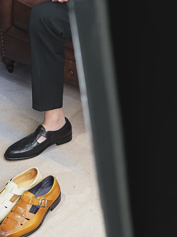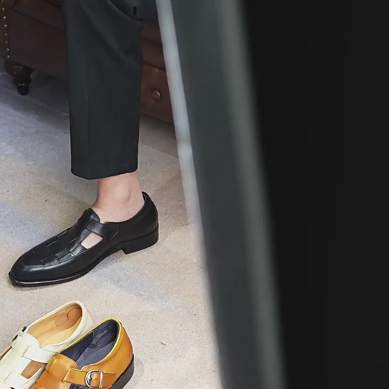 Chinese Retro Cool Leather Shoes for Men Genuine Leather Cowhide Buckle Hollow Business Work Casual Shoes 65129