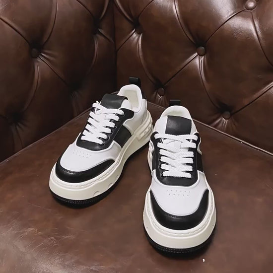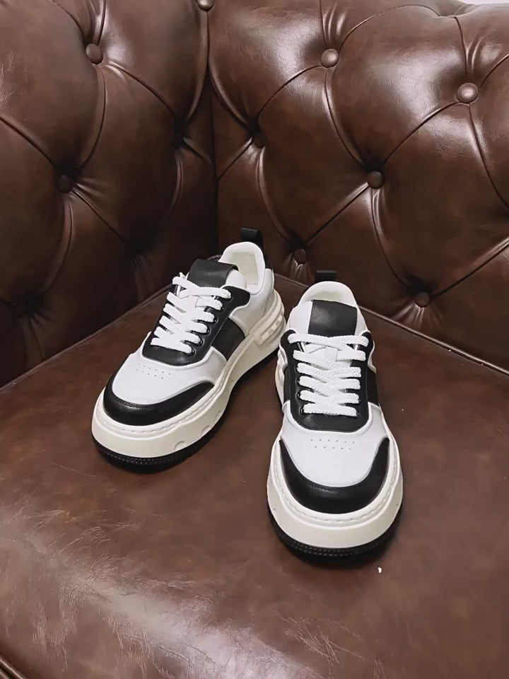 Sneakers Men's Lace-Up New Genuine Leather Casual Shoes Versatile Height-Increasing Comfortable Sports Shoes Thick-Soled Running Shoes Men 88001