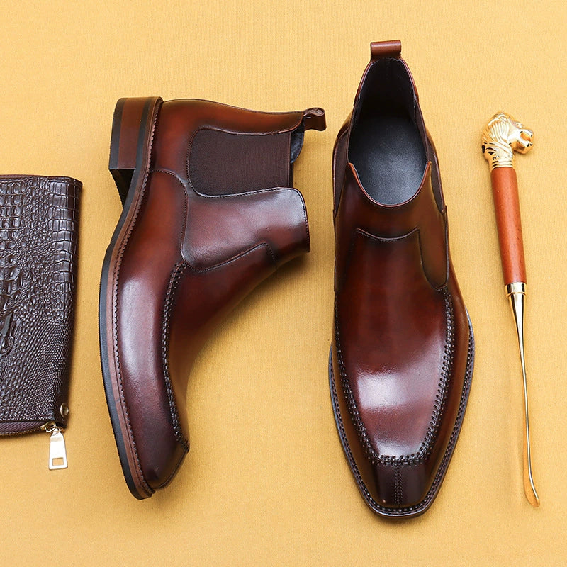 Frustrated with boots that don’t fit office dress codes? These head-layer cowhide Chelsea boots (British style + slip-on design) blend polished formality with daily comfort. Perfect for business—sharp with suits, easy to wear, and durable for long workdays.