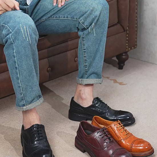 Horse Leather Carved Leather Shoes Men's British Business Formal Wear Work Groom Wedding Leather Bottom A567-6