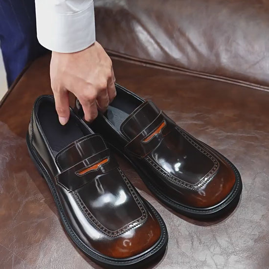 Large Leather Shoes Genuine Leather Slip-On Patent Leather Top Layer Cowhide Round Toe Casual Leather Shoes Men's Casual Formal Business Shoes Men 23711