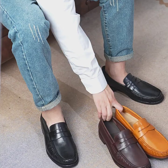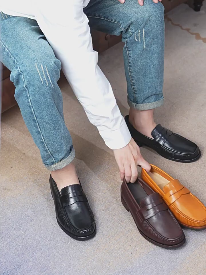 Leather Sole Loafers Horse Leather Men's Loafers Genuine Leather Handmade Slip-On Business Formal Leather Shoes A038-2