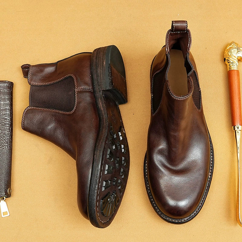 Sick of boots that wear out fast or feel stiff? These Goodyear-welted horsehide Chelsea boots blend classic British style with unbeatable durability. The elastic side panels mean easy slip-on, while the premium horsehide & sturdy sole keep you comfortable—perfect for sharp, long-lasting daily/business-casual looks.