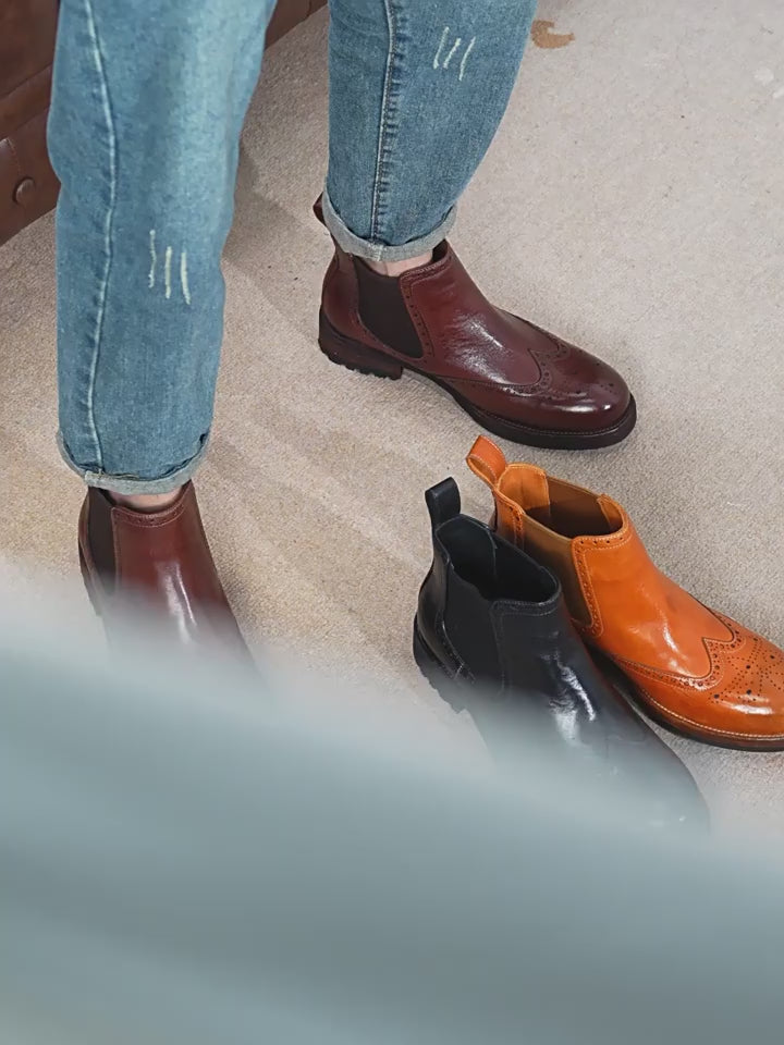 New British Retro Carved Leather Sole Men's Boots High Top Versatile Business Boots M30H-3